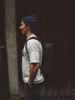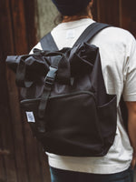 Unser WARNA Rucksack besteht aus recyceltem Polyester und ist ein sogenannter "Roll-Rucksack". Er besitzt oben eine große Öffnung, sodass du auch sperrige Sachen schnell ein- und auspacken, bzw. verstauen kannst. Kurz umrollen und mit einem Klippverschluss sicher verschlossen.