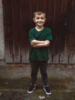 Farben: schwarz (Grundfarbe T-Shirt: dunkelgrün)