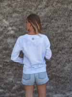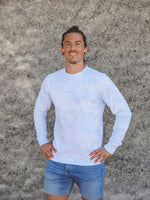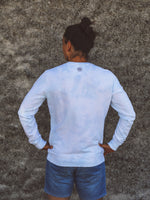 Unser AWAN Sweatshirt in weiß und dezentem blau/türkis. Hinten haben wir unser Logo als Patch aufgenäht. Vorne auf der Brust haben wir unser Logo minimalistisch, dezent aufgebracht.