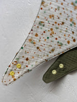 Unser Lätzchen Set - Punkte grün bestehend aus einem Lätzchen mit vielen kleinen Punkten, sowie einem Lätzchen in passendem Grün-Ton.