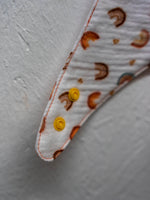 Die Lätzchen, bzw. Spucktücher bestehen aus einen angenehmen Musselin-Stoff, die Farben, bzw. Prints sind so gewählt, dass diese optimal ganzen Tag über von den Kleinsten getragen werden können.