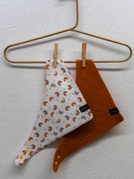 Unser Lätzchen Set - Regenbogen bestehend aus einem Lätzchen mit vielen bunten Regenbogen, sowie einem Lätzchen in passendem Orangeton.