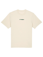 Bäda ist 1,78 m groß und trägt hier Größe L. Durch den Oversized-Look fällt das Shirt etwas größer aus als "normal" geschnittene Shirts.