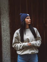 Unsere WARNA Beanie ist Unisex und passt sich flexibel jeder Kopfform an.