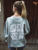 Die Schrift auf dem Oversized Sweater ist im "Hippie-Style" gewählt. Die Farbe der Schrift in edlem weiß. Auf der Brust findest du einen Print mit unserem B·WARNA-Schriftzug. Auf dem Rücken ist groß der Schriftzug "Wild Heart Gipsy Soul" aufgebracht.