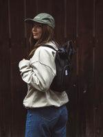 Unser WARNA Rucksack besteht aus recyceltem Polyester und ist ein sogenannter "Roll-Rucksack". Er besitzt oben eine große Öffnung, sodass du auch sperrige Sachen schnell ein- und auspacken, bzw. verstauen kannst. Kurz umrollen und mit einem Klippverschluss sicher verschlossen.