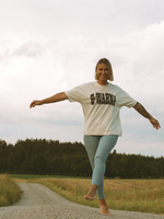 Das Shirt hat einen etwas „lässigeren“ oversized Schnitt als gewöhnliche T-Shirts. Die Ärmel sind etwas länger, der Rundhals ist etwas breiter. Die Grammatur des Shirts ist etwas dicker gewählt, was den urbanen Stil noch mehr unterstreicht. Das T-Shirt bietet einen unverwechselbaren Tragekomfort und ist deshalb derzeit Peter's erster Griff im Kleiderschrank.